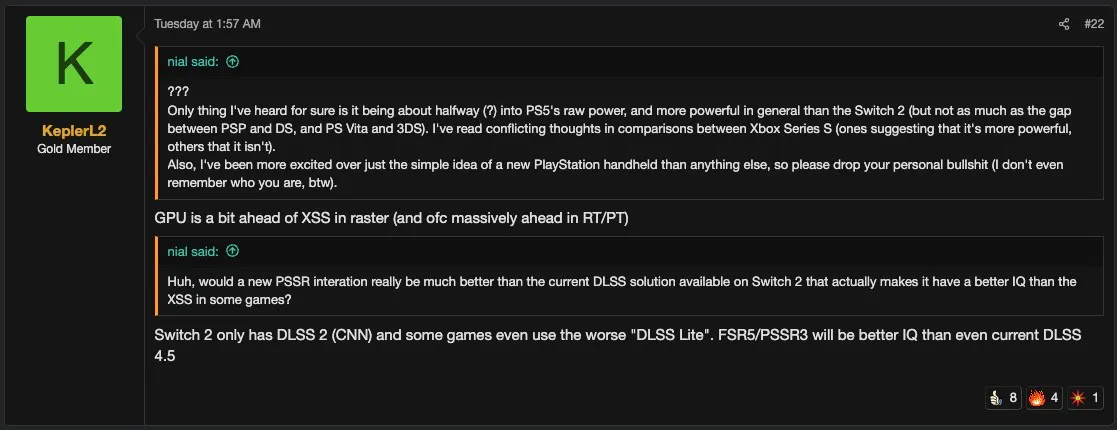 除了強悍的硬件,Sony自研技術成為這款手提機的核心殺手鐧。爆料顯示,PS6 手提機將首發 PSSR 3 AI 圖像超分增強技術,不僅能輕鬆碾壓任天堂 Switch 2 所使用的 DLSS 2,甚至部分遊戲中採用的「DLSS Lite」版本,更在畫質表現上有望反超英偉達當下的 DLSS 4.5 技術,成為手提機端圖像超分技術的新標桿。