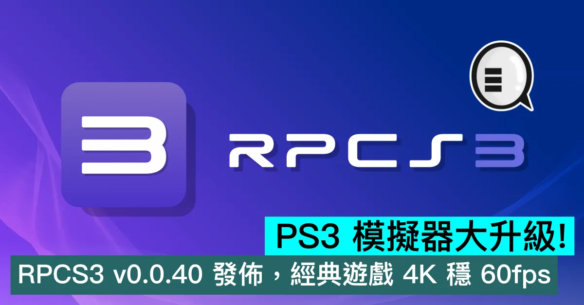 知名開源 PS3 模擬器 RPCS3 正式推出 0.0.40 版本,在 Cell 處理器模擬領域實現重大突破,大幅提升遊戲運行效率,讓多款 PS3 經典遊戲可流暢運行在 4K 解像度下。