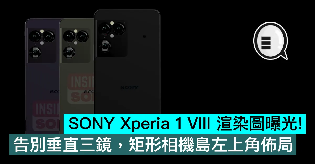 消息源 @科技媒體 PhoneArena 發出了 Sony Xperia 1 VIII 手機最新渲染圖,機身背面使用了矩形相機島的設計,機身背面有三個鏡頭集中在左上角,而非使用過往的垂直三鏡設計。機身正面沿用了 Xperia 系列的傳統設計,前置鏡頭和聽筒都在頂部邊框,第二揚聲器在底部邊框內。
