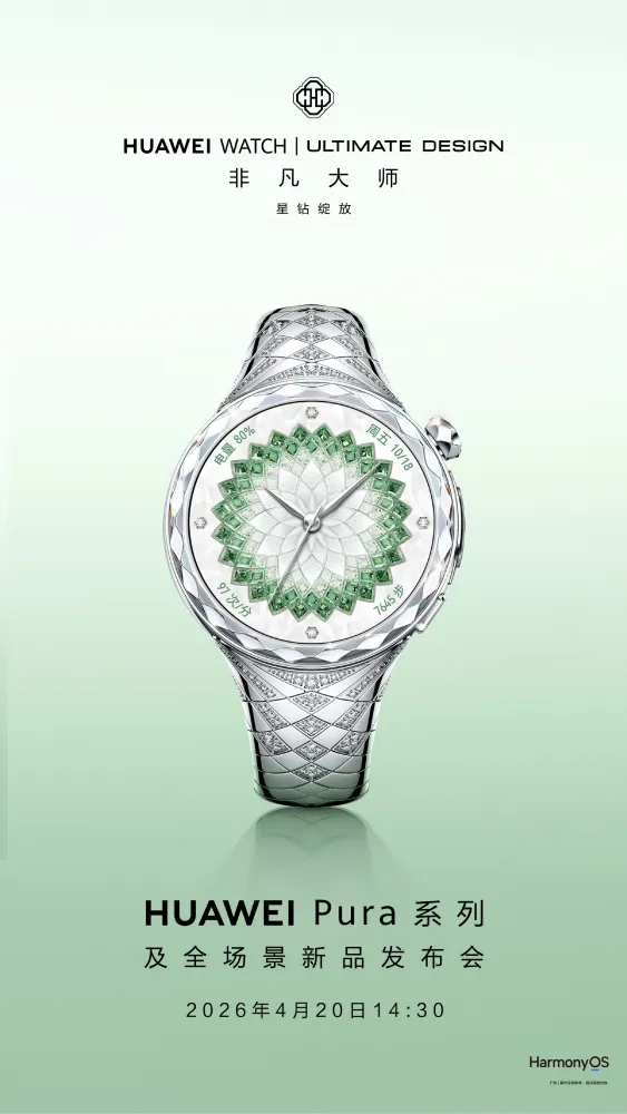 華為推出 WATCH ULTIMATE DESIGN 非凡大師星鑽綻放版,定檔4月20日發佈。