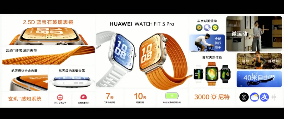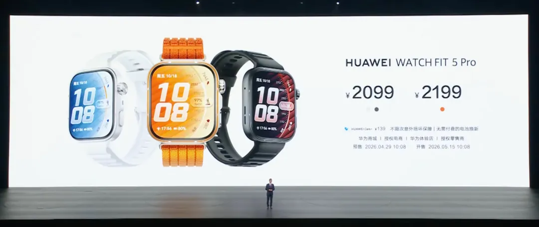 HUAWEI WATCH FIT 5 Pro 則堪稱華為目前最強的方形智能手錶,售價 2099元人民幣起。