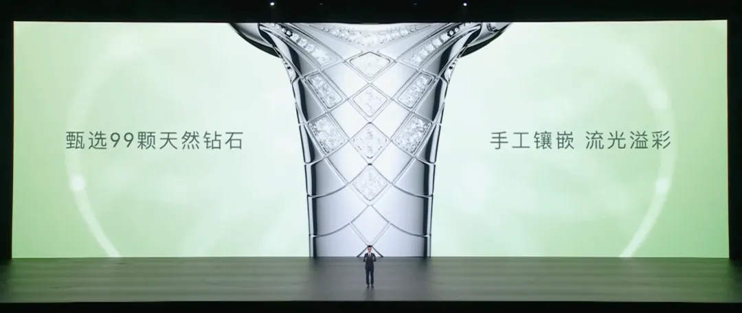 該腕表與國際著名珠寶設計師 Francesca Amfitheatrof 聯袂打造,全表鑲嵌 99顆天然鑽石,經由極致鑽切工藝呈現璀璨火彩。國際超模劉雯擔任品牌大使。在美學之外,它搭載玄璣感知系統,支援長按 3秒完成 17項微體檢,並擁有情緒幾何可視化錶盤。