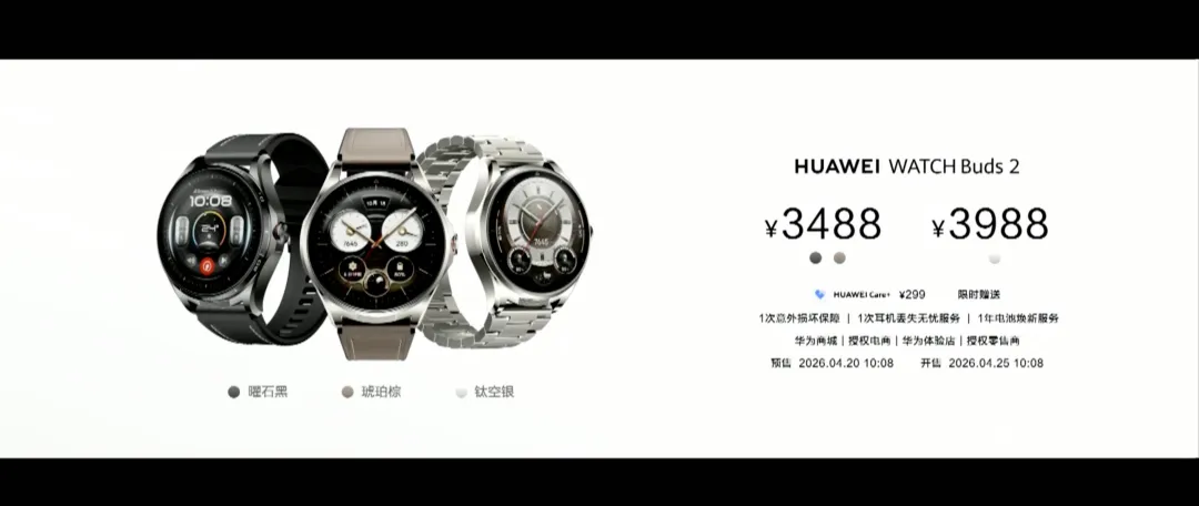 健康監測方面,WATCH Buds 2 覆蓋了脈搏波房顫提示、睡眠呼吸暫停檢測及高血糖風險評估研究等深度功能。售價方面,琥珀棕與曜石黑款為 3488元人民幣,鈦空銀金屬錶帶版為 3988元人民幣。