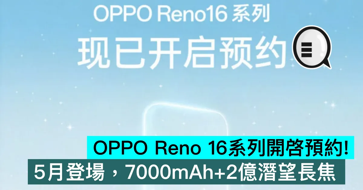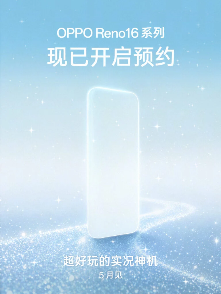 OPPO 今日正式宣佈,Reno 16 系列手機開啓預約,預計 5 月正式亮相。該系列主打「實況神機」,將包含 Reno 16 和 Reno 16 Pro 兩款機型。