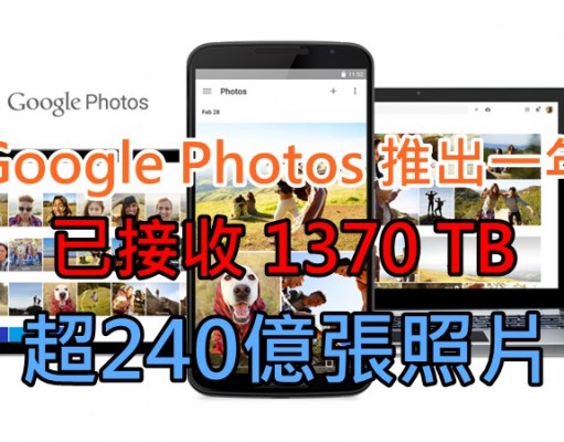 Google Photos 推出一年已接收 1.37PB 超240億張照片!