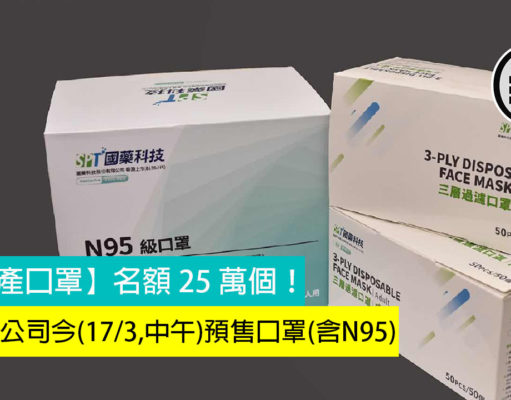 【港產口罩】上市公司今(17/3,中午)預售口罩(含N95),名額 25 萬個!