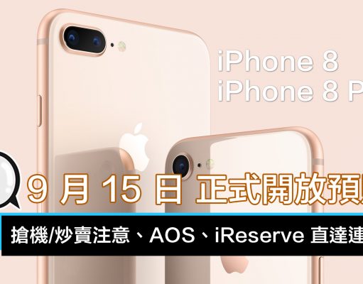 iPhone 8、iPhone 8 Plus (9/15) 搶購注意、AOS、iReserve 直達連結!