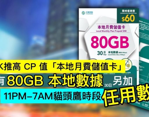 CMHK推高 CP 值「本地月費儲值卡」: $30 有 80GB + 11PM-7AM貓頭鷹時段任用數據!
