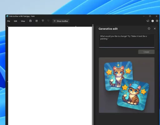 Windows 11「小畫家」重大更新,工具欄自動隱藏+全新 AI 功能